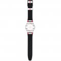 Questo cinturino Swatch è fatto in silicone ed è collegato all'orologio per mezzo di perni in acciaio. Il cinturino ha una larghezza di 19.7 mm e si chiude a mezzo di fibbia. Il cinturino non ha montatura dritta, il che significa che questo cinturino è adatto solo per gli orologi elencati di seguito.
