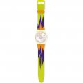Questo cinturino Swatch è fatto in silicone ed è collegato all'orologio per mezzo di perni in acciaio. Il cinturino ha una larghezza di 19.7 mm e si chiude a mezzo di fibbia. Il cinturino non ha montatura dritta, il che significa che questo cinturino è adatto solo per gli orologi elencati di seguito.