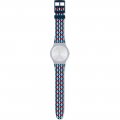 Questo cinturino Swatch è fatto in silicone ed è collegato all'orologio per mezzo di perni in acciaio. Il cinturino ha una larghezza di 19.7 mm e si chiude a mezzo di fibbia. Il cinturino non ha montatura dritta, il che significa che questo cinturino è adatto solo per gli orologi elencati di seguito.