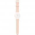 Questo cinturino Swatch è fatto in silicone ed è collegato all'orologio per mezzo di perni in acciaio. Il cinturino ha una larghezza di 19.7 mm e si chiude a mezzo di fibbia. Il cinturino non ha montatura dritta, il che significa che questo cinturino è adatto solo per gli orologi elencati di seguito.