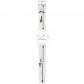 Questo cinturino Swatch è fatto in silicone ed è collegato all'orologio per mezzo di perni in acciaio. Il cinturino ha una larghezza di 19.7 mm e si chiude a mezzo di fibbia. Il cinturino non ha montatura dritta, il che significa che questo cinturino è adatto solo per gli orologi elencati di seguito.