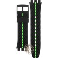 Questo cinturino Swatch è fatto in silicone ed è collegato all'orologio per mezzo di perni in acciaio. Il cinturino ha una larghezza di 20.1 mm e si chiude a mezzo di fibbia. Il cinturino non ha montatura dritta, il che significa che questo cinturino è adatto solo per gli orologi elencati di seguito.