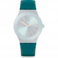 Questo cinturino Swatch è fatto in silicone ed è collegato all'orologio per mezzo di perni in acciaio. Il cinturino ha una larghezza di 19.8 mm e si chiude a mezzo di fibbia. Il cinturino non ha montatura dritta, il che significa che questo cinturino è adatto solo per gli orologi elencati di seguito.