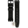 Questo cinturino Swatch è fatto in silicone ed è collegato all'orologio per mezzo di perni in acciaio. Il cinturino ha una larghezza di 21.3 mm e si chiude a mezzo di fibbia. Il cinturino non ha montatura dritta, il che significa che questo cinturino è adatto solo per gli orologi elencati di seguito.