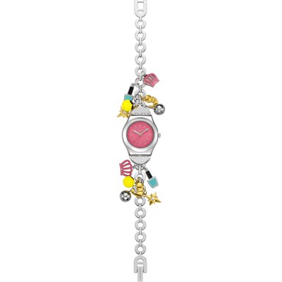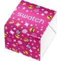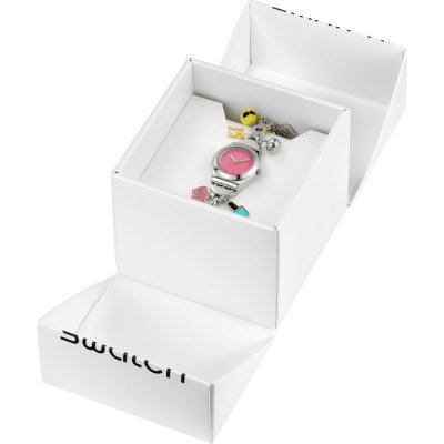 Questo orologio Swatch ha una cassa in Inox con un diametro di 25 mm ed è dotato di un cinturino in Metallo. All'interno della cassa si trova un movimento di ETA e l'orologio è dotato di un cristallo di Acrilico.