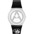 Questo cinturino Swatch è fatto in silicone ed è collegato all'orologio per mezzo di perni in acciaio. Il cinturino ha una larghezza di 19.7 mm e si chiude a mezzo di fibbia. Il cinturino non ha montatura dritta, il che significa che questo cinturino è adatto solo per gli orologi elencati di seguito.