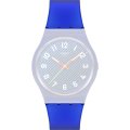 Questo cinturino Swatch è fatto in silicone ed è collegato all'orologio per mezzo di perni in acciaio. Il cinturino ha una larghezza di 17 mm e si chiude a mezzo di fibbia. Il cinturino non ha montatura dritta, il che significa che questo cinturino è adatto solo per gli orologi elencati di seguito.