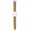 Questo cinturino Swatch è fatto in pelle ed è collegato all'orologio per mezzo di perni in acciaio. Il cinturino ha una larghezza di 19.7 mm e si chiude a mezzo di fibbia. Il cinturino non ha montatura dritta, il che significa che questo cinturino è adatto solo per gli orologi elencati di seguito.