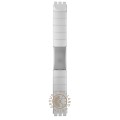 Questo cinturino Swatch è fatto in alluminio ed è collegato all'orologio per mezzo di perni in acciaio. Il cinturino ha una larghezza di 17 mm e si chiude a mezzo di chiusura deployante. Il cinturino non ha montatura dritta, il che significa che questo cinturino è adatto solo per gli orologi elencati di seguito.