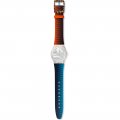 Questo cinturino Swatch è fatto in tessuto su pelle ed è collegato all'orologio per mezzo di perni in acciaio. Il cinturino ha una larghezza di 17 mm e si chiude a mezzo di fibbia. Il cinturino non ha montatura dritta, il che significa che questo cinturino è adatto solo per gli orologi elencati di seguito.