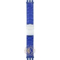 Questo cinturino Swatch è fatto in alluminio ed è collegato all'orologio per mezzo di perni in acciaio. Il cinturino ha una larghezza di 19.7 mm e si chiude a mezzo di chiusura deployante con bottoni e sicurezza. Il cinturino non ha montatura dritta, il che significa che questo cinturino è adatto solo per gli orologi elencati di seguito.