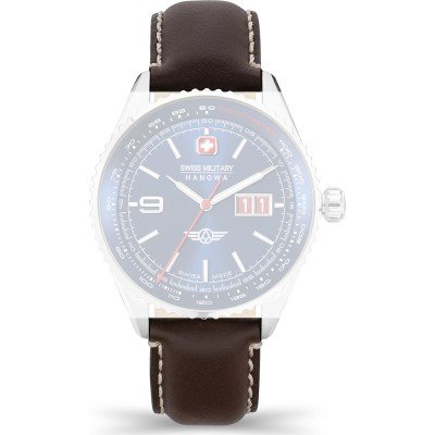Questo cinturino Swiss Military Hanowa è fatto in pelle ed è collegato all'orologio per mezzo di perni a molla. Il cinturino ha una larghezza di 21 mm e si chiude a mezzo di fibbia. Il cinturino ha un attacco dritto, il che significa che questo cinturino è adatto a tutti gli orologi di Swiss Military Hanowa con attacco dritto.