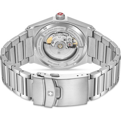 Questo orologio Swiss Military Hanowa ha una cassa in Inox con un diametro di 41 mm ed è dotato di un cinturino in Inox. All'interno della cassa si trova un movimento di Soprod e l'orologio è dotato di un cristallo di Zaffiro.