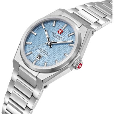 Questo orologio Swiss Military Hanowa ha una cassa in Inox con un diametro di 14 mm ed è dotato di un cinturino in Inox. All'interno della cassa si trova un movimento di Soprod e l'orologio è dotato di un cristallo di Zaffiro.