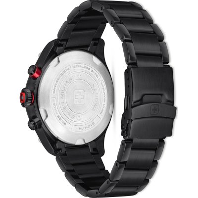 L'orologio è impermeabile a 10ATM. Questo significa che l'orologio è adatto al nuoto. L'orologio è fornito con Swiss Military 3+2.