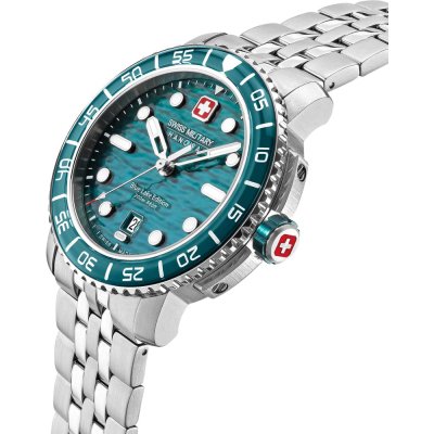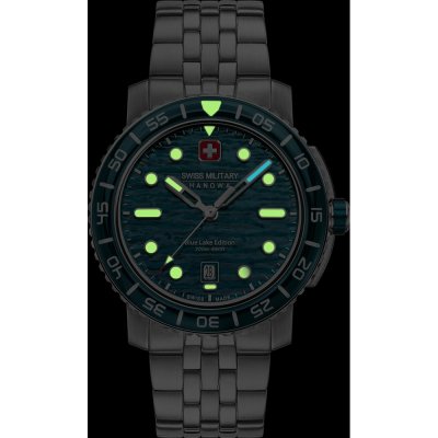 L'orologio è impermeabile a 20ATM. Ciò significa che l'orologio è adatto alle immersioni. L'orologio è fornito con Swiss Military 3+2.