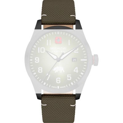 Questo cinturino Swiss Military Hanowa è fatto in tessuto su pelle ed è collegato all'orologio per mezzo di perni a molla. Il cinturino ha una larghezza di 22 mm e si chiude a mezzo di fibbia. Il cinturino ha un attacco dritto, il che significa che questo cinturino è adatto a tutti gli orologi di Swiss Military Hanowa con attacco dritto.