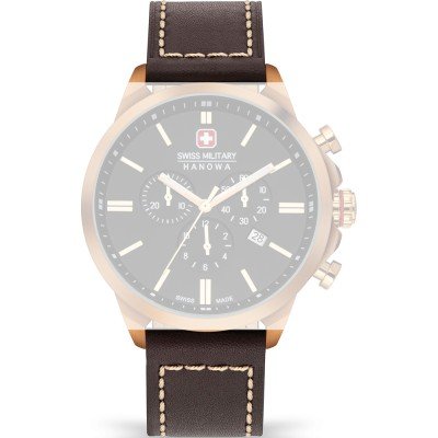 Questo cinturino Swiss Military Hanowa è fatto in pelle ed è collegato all'orologio per mezzo di perni a molla. Il cinturino ha una larghezza di 22 mm e si chiude a mezzo di fibbia. Il cinturino ha un attacco dritto, il che significa che questo cinturino è adatto a tutti gli orologi di Swiss Military Hanowa con attacco dritto.