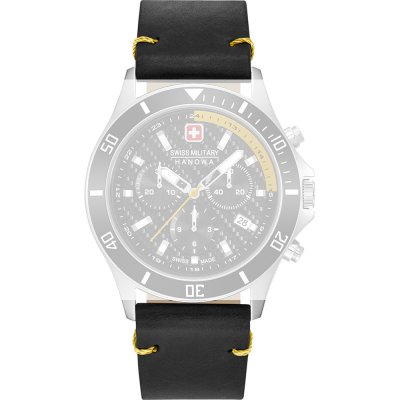 Questo cinturino Swiss Military Hanowa è fatto in pelle ed è collegato all'orologio per mezzo di perni a molla. Il cinturino ha una larghezza di 22 mm e si chiude a mezzo di fibbia. Il cinturino ha un attacco dritto, il che significa che questo cinturino è adatto a tutti gli orologi di Swiss Military Hanowa con attacco dritto.