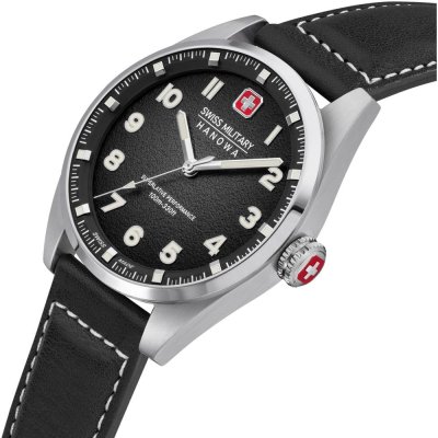 Questo orologio Swiss Military Hanowa ha una cassa in Inox con un diametro di 42 mm ed è dotato di un cinturino in Pelle. All'interno della cassa si trova un movimento di Ronda e l'orologio è dotato di un cristallo di Zaffiro.