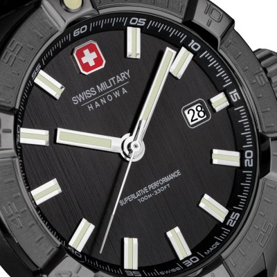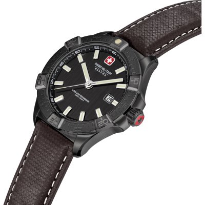 L'orologio è impermeabile a 10ATM. Questo significa che l'orologio è adatto al nuoto. L'orologio è fornito con Swiss Military 3+2.