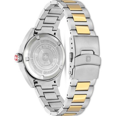 L'orologio è impermeabile a 10ATM. Questo significa che l'orologio è adatto al nuoto. L'orologio è fornito con Swiss Military 3+2.