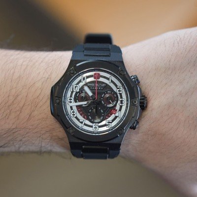 L'orologio è impermeabile a 10ATM. Questo significa che l'orologio è adatto al nuoto. L'orologio è fornito con Swiss Military 3+2.