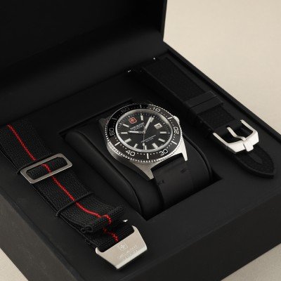 L'orologio è impermeabile a 10ATM. Questo significa che l'orologio è adatto al nuoto. L'orologio è fornito con Swiss Military 3+2.
