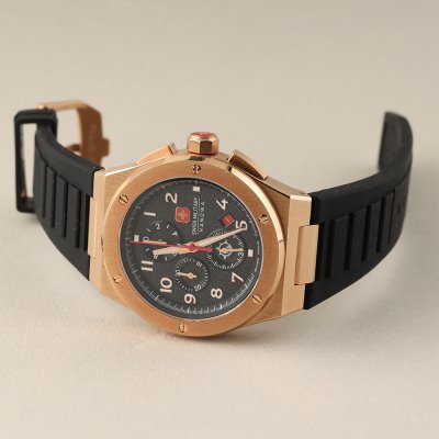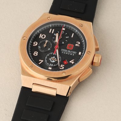 Questo orologio Swiss Military Hanowa ha una cassa in Inox con un diametro di 43 mm ed è dotato di un cinturino in gomma. All'interno della cassa si trova un movimento di Ronda e l'orologio è dotato di un cristallo di Zaffiro.