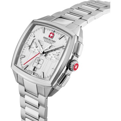 Questo orologio Swiss Military Hanowa ha una cassa in Inox con un diametro di 40 mm ed è dotato di un cinturino in Inox. All'interno della cassa si trova un movimento di Ronda e l'orologio è dotato di un cristallo di Zaffiro.