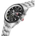 Questo orologio Swiss Military Hanowa ha una cassa in Inox con un diametro di 43 mm ed è dotato di un cinturino in Inox. All'interno della cassa si trova un movimento di Ronda e l'orologio è dotato di un cristallo di Zaffiro.