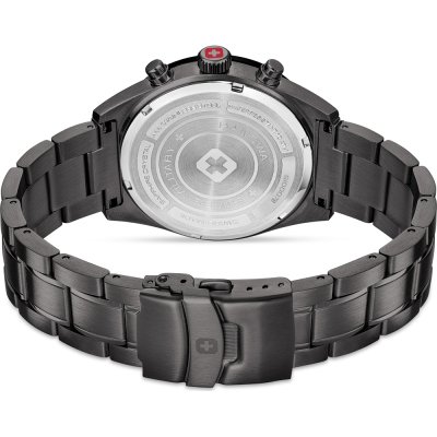Questo orologio Swiss Military Hanowa ha una cassa in Inox con un diametro di 43 mm ed è dotato di un cinturino in Inox. All'interno della cassa si trova un movimento di Ronda e l'orologio è dotato di un cristallo di Zaffiro.