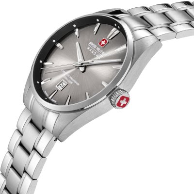 Questo orologio Swiss Military Hanowa ha una cassa in Inox con un diametro di 42 mm ed è dotato di un cinturino in Inox. All'interno della cassa si trova un movimento di Ronda e l'orologio è dotato di un cristallo di Zaffiro.