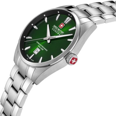 Questo orologio Swiss Military Hanowa ha una cassa in Inox con un diametro di 42 mm ed è dotato di un cinturino in Inox. All'interno della cassa si trova un movimento di Ronda e l'orologio è dotato di un cristallo di Zaffiro.