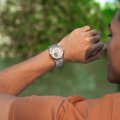 L'orologio è impermeabile a 5ATM. Questo significa che l'orologio è adatto per la doccia. L'orologio è fornito con 2 Anni di garanzia.