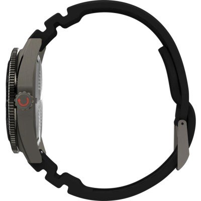 Questo orologio Timex ha una cassa in Inox con un diametro di 40 mm ed è dotato di un cinturino in gomma. All'interno della cassa si trova un movimento di Timex e l'orologio è dotato di un cristallo di Zaffiro.