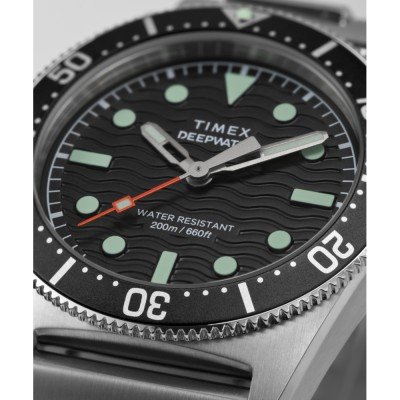 Questo orologio Timex ha una cassa in Inox con un diametro di 40 mm ed è dotato di un cinturino in Inox. All'interno della cassa si trova un movimento di Timex e l'orologio è dotato di un cristallo di Zaffiro.