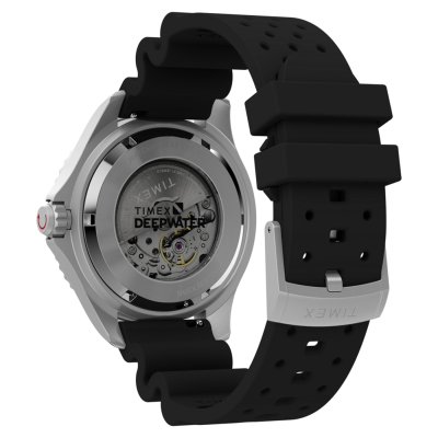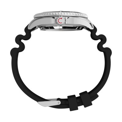 Questo orologio Timex ha una cassa in Inox con un diametro di 44 mm ed è dotato di un cinturino in gomma. All'interno della cassa si trova un movimento di Timex e l'orologio è dotato di un cristallo di Zaffiro singolo antiriflesso.