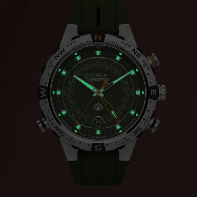 Questo orologio Timex ha una cassa in Inox con un diametro di 45 mm ed è dotato di un cinturino in gomma. All'interno della cassa si trova un movimento di Timex e l'orologio è dotato di un cristallo di Minerale.