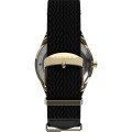 Questo orologio Timex ha una cassa in Inox con un diametro di 38 mm ed è dotato di un cinturino in Tessuto. All'interno della cassa si trova un movimento di Timex e l'orologio è dotato di un cristallo di Acrilico.