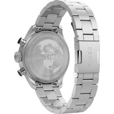 Questo orologio Timex ha una cassa in Inox con un diametro di 43 mm ed è dotato di un cinturino in Inox. All'interno della cassa si trova un movimento di Timex e l'orologio è dotato di un cristallo di Minerale.