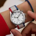 Questo orologio Timex ha una cassa in Inox con un diametro di 40 mm ed è dotato di un cinturino in Tessuto. All'interno della cassa si trova un movimento di Timex e l'orologio è dotato di un cristallo di Minerale.