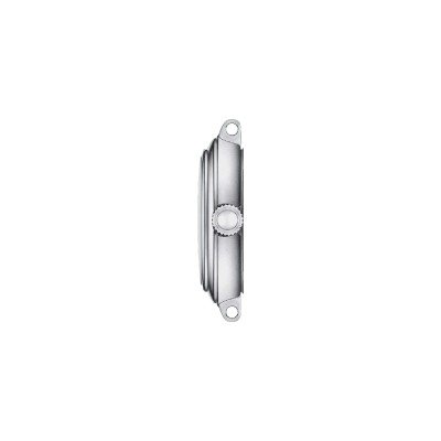 Questo orologio Tissot ha una cassa in Inox con un diametro di 26 mm ed è dotato di un cinturino in Inox. All'interno della cassa si trova un movimento di ETA e l'orologio è dotato di un cristallo di Zaffiro.