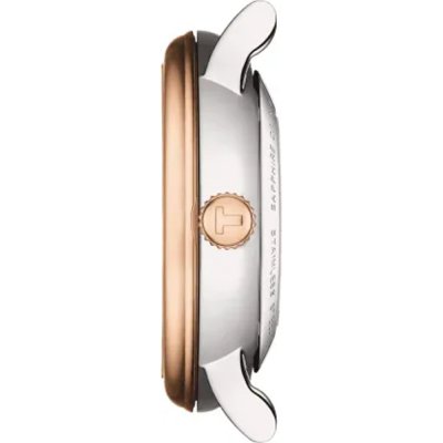 Questo orologio Tissot ha una cassa in Inox con un diametro di 30 mm ed è dotato di un cinturino in Pelle. All'interno della cassa si trova un movimento di ETA e l'orologio è dotato di un cristallo di Zaffiro.
