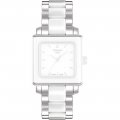 Questo cinturino Tissot è fatto in ceramica ed è collegato all'orologio per mezzo di perni in acciaio. Il cinturino ha una larghezza di 16 mm e si chiude a mezzo di chiusura deployante con bottoni. Il cinturino non ha montatura dritta, il che significa che questo cinturino è adatto solo per gli orologi elencati di seguito.