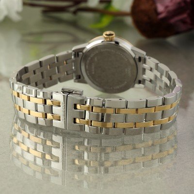 Questo orologio Tissot ha una cassa in Inox con un diametro di 28 mm ed è dotato di un cinturino in Inox. All'interno della cassa si trova un movimento di ETA e l'orologio è dotato di un cristallo di Zaffiro.