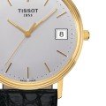 Questo orologio Tissot ha una cassa in Oro 18K con un diametro di 33.7 mm ed è dotato di un cinturino in Pelle. All'interno della cassa si trova un movimento di ETA e l'orologio è dotato di un cristallo di Hesalite.