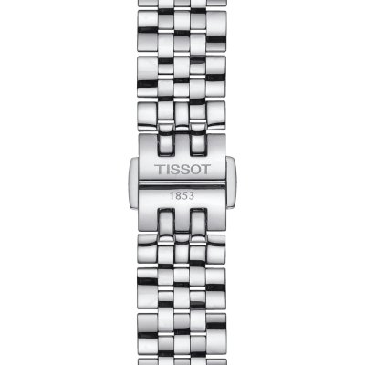Questo orologio Tissot ha una cassa in Inox con un diametro di 29 mm ed è dotato di un cinturino in Inox. All'interno della cassa si trova un movimento di ETA e l'orologio è dotato di un cristallo di Zaffiro.