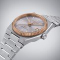 Con un diametro di 35 mm, il Tissot PRX Powermatic 80 è destinato alle donne, ma il suo look modernista ha un fascino universale. L'orologio fa parte dell'iconica famiglia di orologi con bracciale integrato PRX con una caratteristica in più: la lunetta scanalata di questo orologio è realizzata in oro rosa 18 carati e contrasta splendidamente con il quadrante in acciaio spazzolato. Gli indici delle ore di questo orologio sono incastonati da 44 diamanti veri e scintillanti, che trasformano questo orologio dal design elegante in un accessorio elegante e di lusso.