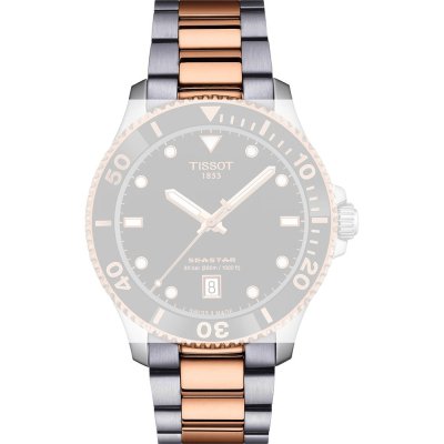 Questo cinturino Tissot è fatto in acciaio inox ed è collegato all'orologio per mezzo di perni a molla a sgancio rapido. Il cinturino ha una larghezza di 20 mm e si chiude a mezzo di chiusura deployante con bottoni e sicurezza. Il cinturino non ha montatura dritta, il che significa che questo cinturino è adatto solo per gli orologi elencati di seguito.